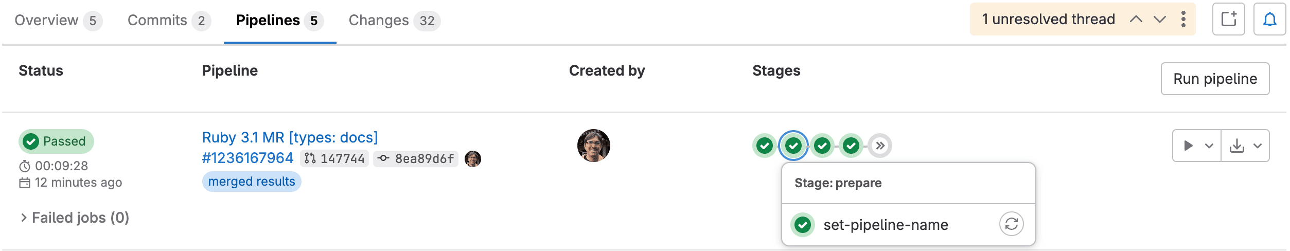 - Merged results pipelines are merge request pipelines that act as though the changes from the source branch have already been merged into the target branch.